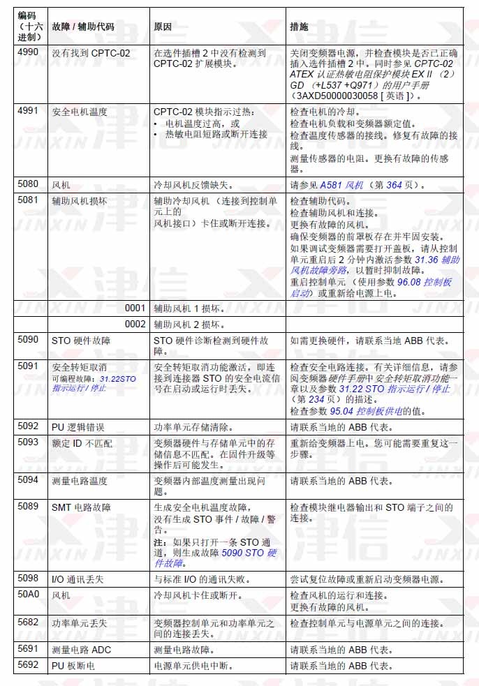 1. ABB ACS580變頻器故障代碼4990,4991,5080,5081,5090,5091,5092,5093,5094,5089,5098,50A0,5682,5691,5692