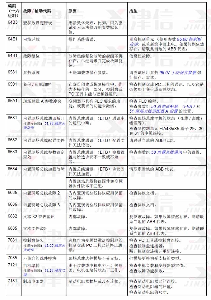 1. ABB ACS580變頻器故障代碼64B3,64E1,6581,6591,65A1,6681,6682,6683,6684,6685,6686,6882,6885,7081,7085,7121,7181
