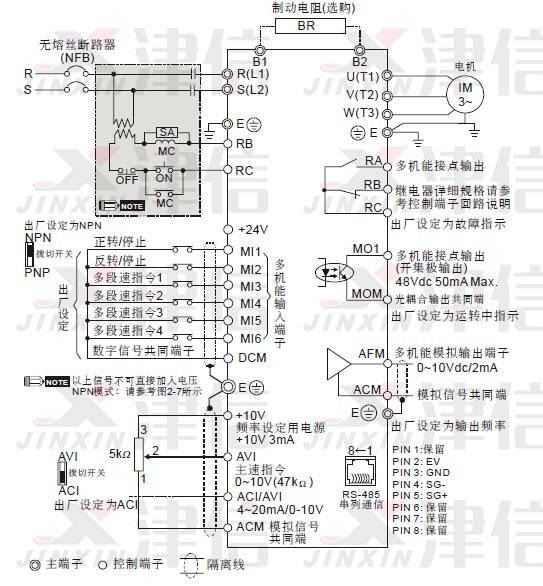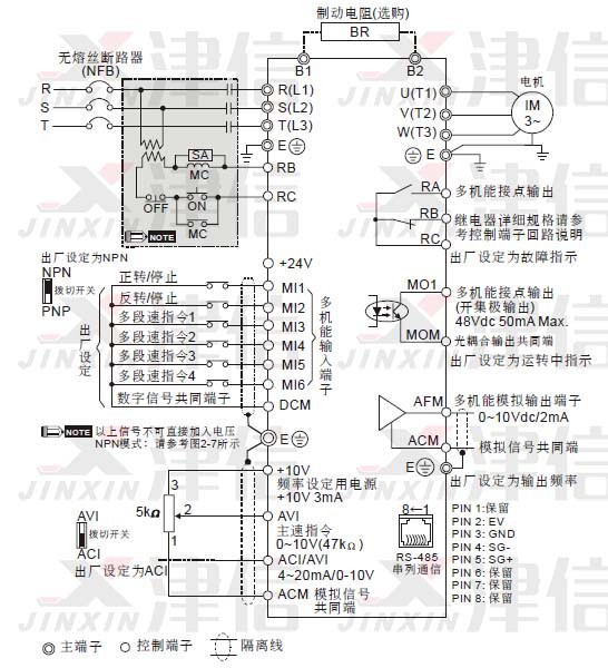 l 控制配線請(qǐng)盡量使用隔離線,端子前的隔離網(wǎng)剝除段請(qǐng)勿露出。