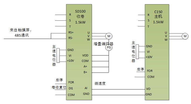 原收卷系統(tǒng)采用“變頻器+電機(jī)+磁粉+張力控制器”的模式,設(shè)備使用一段時(shí)間后需要對磁粉進(jìn)行維護(hù),且磁粉故障率較高,增加了廠家和客戶的故障點(diǎn)和維護(hù)成本;