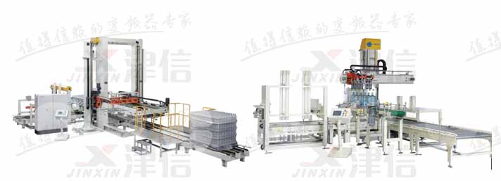 本項目設備名稱為碼垛機和卸垛機,碼垛機是將已裝入容器的紙箱,按一定排列碼放在托盤、棧板(木質(zhì)、塑膠)上,進行自動堆碼,可堆碼多層,然后推出,卸垛機的工作原理基本和碼垛機一樣,只不過工序不一樣;丹佛斯變頻器在本項目中主要負責所有電機的控制,包括輸送線控制、定位控制等。